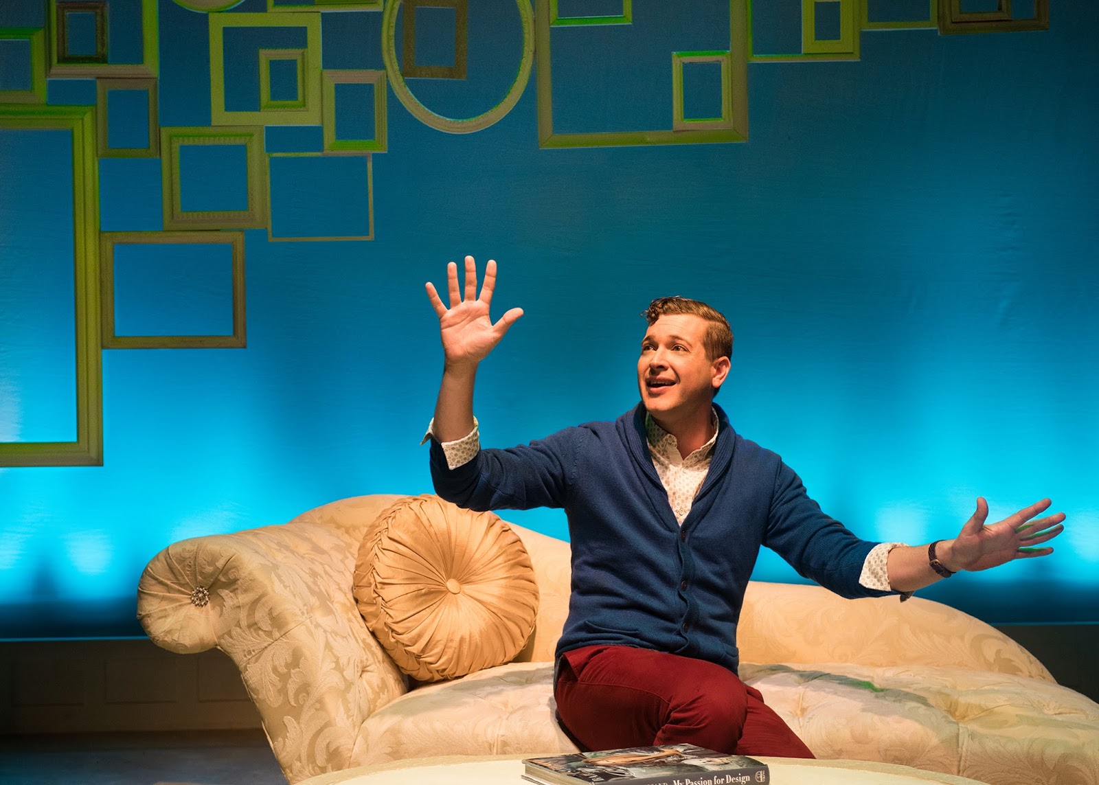 It all begins with a whole slew of animated disclaimers. What we are about to hear is “all fiction,” that “I am just an actor.” (But the part about the fake shopping mall under her house, all true as outlined in her one published book, My Passion for Design.) With flashing hands, he admits sheepishly, “I was never that big of a Barbra queen” (although he does admit she was “part of my birthright, my heritage.”) He is quick to add that there will be no impersonating the Great One by him in this show tonight. “Enough people do her – even some women – so you don’t need me to.” But of course, “When I tell you about the conversations we had – which never really took place – I’ll just be her, and you can fill in the rest.” And actually, the audience of the intimate Walker Theatre of the New Conservatory Theatre Center has to fill in very little because for the next ninety minutes, J. Conrad Frank will hold court front and center in his non-stop, rapid-fire version of Jonathan Tolins’ Broadway and touring hit, Buyer and Cellar.