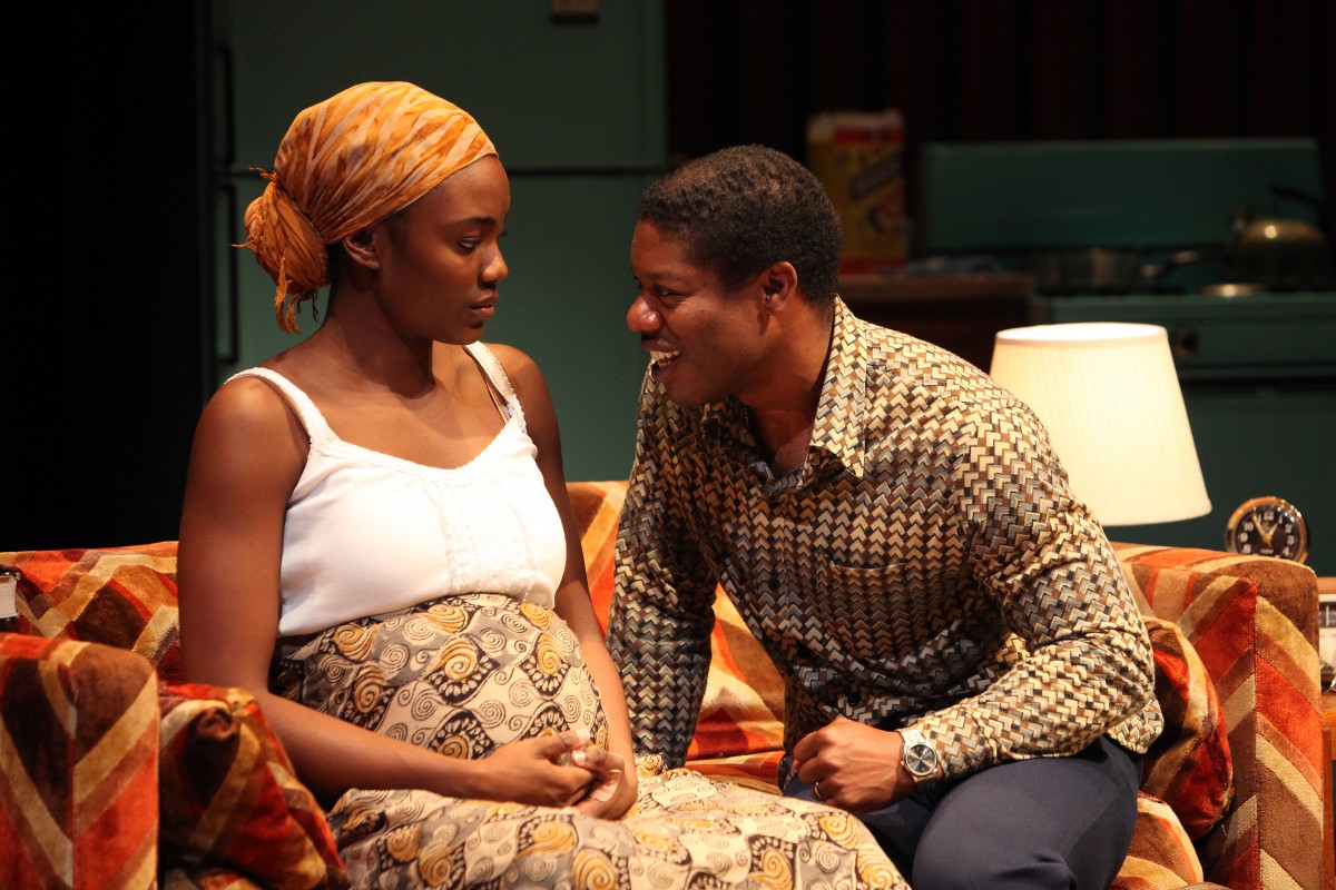 We first meet Abasiama Ekpeyoung in her humble apartment with its 1960s green kitchen appliances as she strokes with some combined annoyance and amusement her very pregnant belly — humming, then singing in her native Nigerian tongue, and finally feeding herself and the hungry, kicking one inside. Her questioning look (as if the protrusion is not really her or hers) and her sigh that she just wants to get back to studying her college biology text establishes some of the conflicts and dilemmas this young, hard-working immigrant will play out in the next two hours. Katherine Renee Turner is outstanding in displaying an ocean-depth of Abasiama’s emotions and expressions — from long, blank stares of no response to peppered questions aimed at her to visceral screams of anger to desperate cries of lonely anguish and fear. She has arrived in Houston from Nigeria as part of the ‘60s and ‘70s waves of Nigerian education-seekers to join her husband who is supposedly nearing his own graduation from Texas Southern University. She supports him by working long, grueling hours in the sultry, Houston humidity amd standing all day in the small, glass-enclosed cashier’s hut of a Fiesta gas station. And she longs for her faraway dad and close community of extended family and friends while enduring a husband whom she suspects is not going to class and who periodically just disappears for days and weeks at a time.