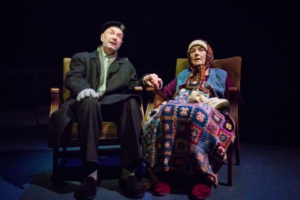 With both a birth and a death playing major roles in the play’s stories, Milk spans and touches epic-size themes by focusing on the day-to-day details of the three couples, often dealing something about food. Cyril and May are an elderly couple holding out in a building condemned for destruction with no heat, no food, no light; but they have each other and memories stretching back to World War II, which May says, “You won the war … for me … You’re my hero.” Tam Dean Burn and Ann Louise Ross both give touching, heart-wrenching performances as their story intertwines with the other two. When May dances with Tam her last dance in life to “You’ll Never Know Just How Much I Love You,” our hearts break almost as much as his. Their love is life itself, and it is that love that leads Cyril to take an action that jeopardizes his own life’s well-being.