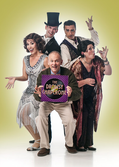 From the still-dark stage, we hear a squeaky, dramatic, and overly protracted sigh, followed by “I hate theatre.” But when the lights finally come up on a rather mousy, nervous-looking man in bow tie and sweater, we soon learn this Man in Chair does love, no adores, no totally idolizes musicals with his full, twittering soul. He especially likes those musicals of yesteryear found today only among his collection of rare LPs. From a frumpy chair in his dumpy, one room apartment, we are about to hear — and most improbably actually to see — his favorite musical of all, The Drowsy Chaperone.
