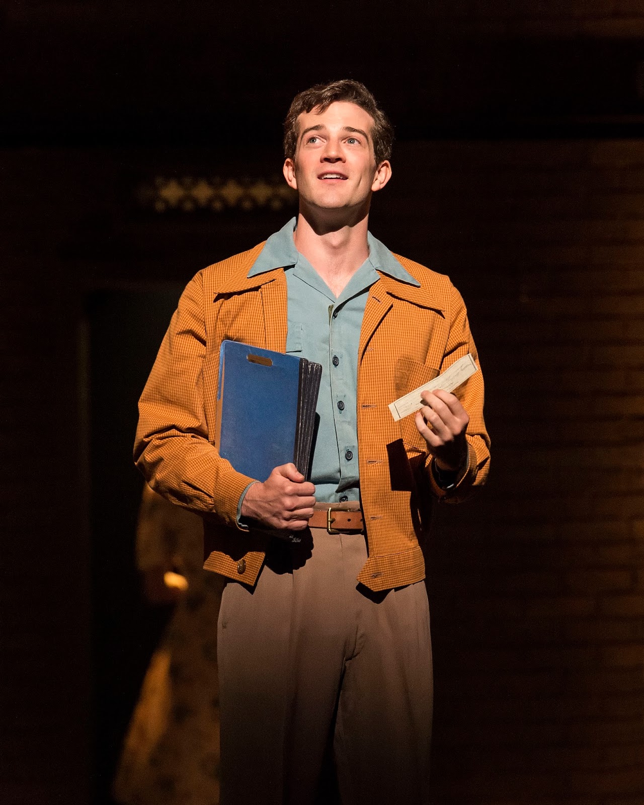 Likewise impressive is A.J. Shively as Billy Cane, who delivers the musical’s title song with a brightness of tone and manner that totally works, even as we know his youthful unbounded optimism of “I’m on my way, bright star, keep shining on me” has yet to be tested. Mr. Shively is the All-American guy in a such an innocent way that — for this particular make-believe story — we forgive him for being white, male, and full of luck-and-promise in a 1940s Southern world where – if we were to think about it – things are not going so well for a lot of other residents (none of whose darker skin colors is represented in this particular story or this touring cast).