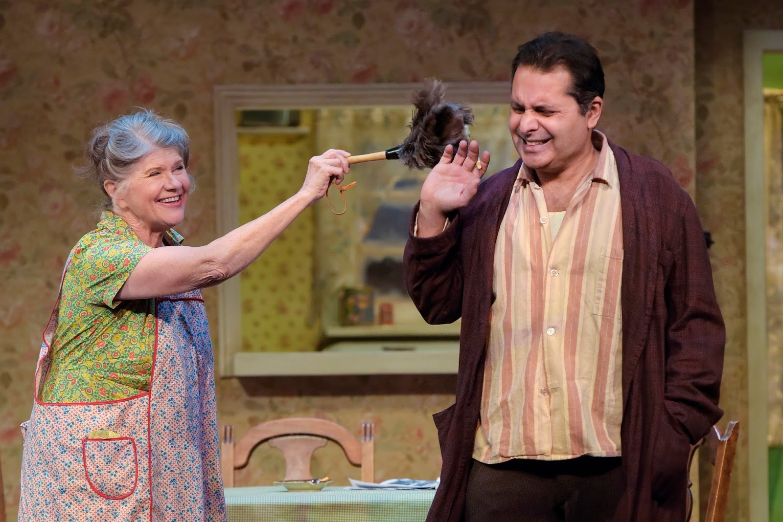 Pinter and Perloff are quite the team and together know how to lure in an audience with an opening scene that is hilarious in its innocence and silliness. (Woe be to any Pinter-neophytes who have no idea what is about to hit them a half hour later.) Peety Boles is a sixty-something chair attendant in a beach community somewhere south of London and is coming in for his breakfast and to read the morning paper. Meg is serving with big smiles (and I do mean ‘big’) his Kellogg’s Corn Flakes, bubbling “Are they nice? I thought they’d be nice.”