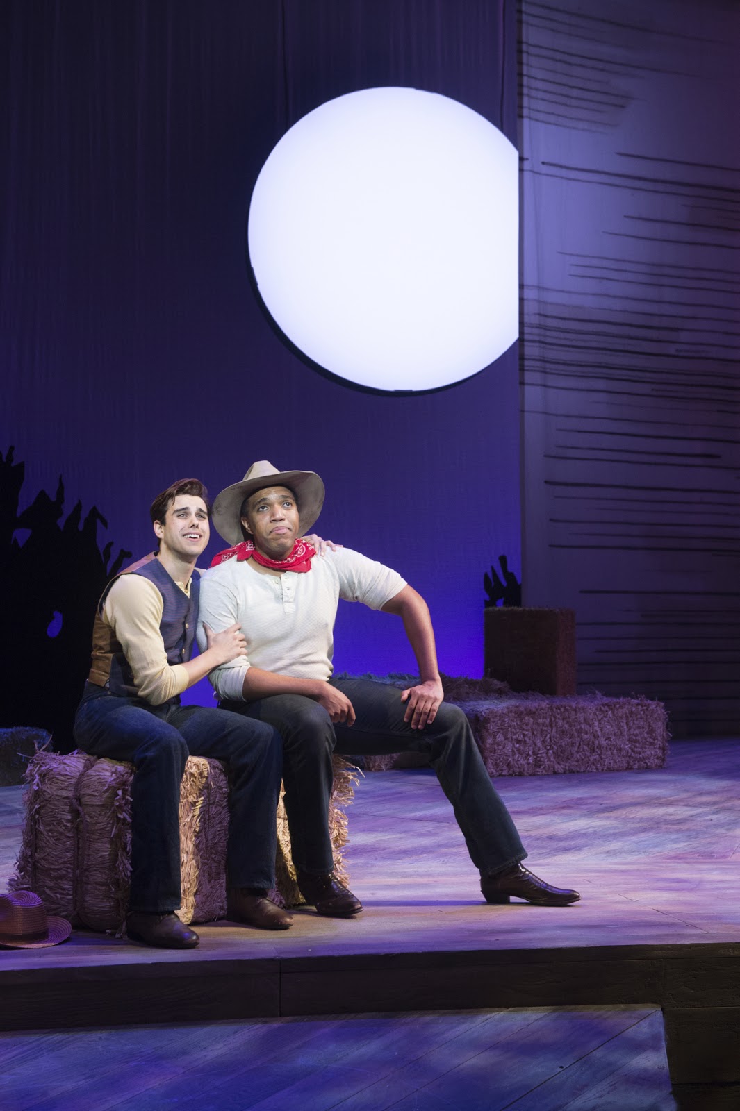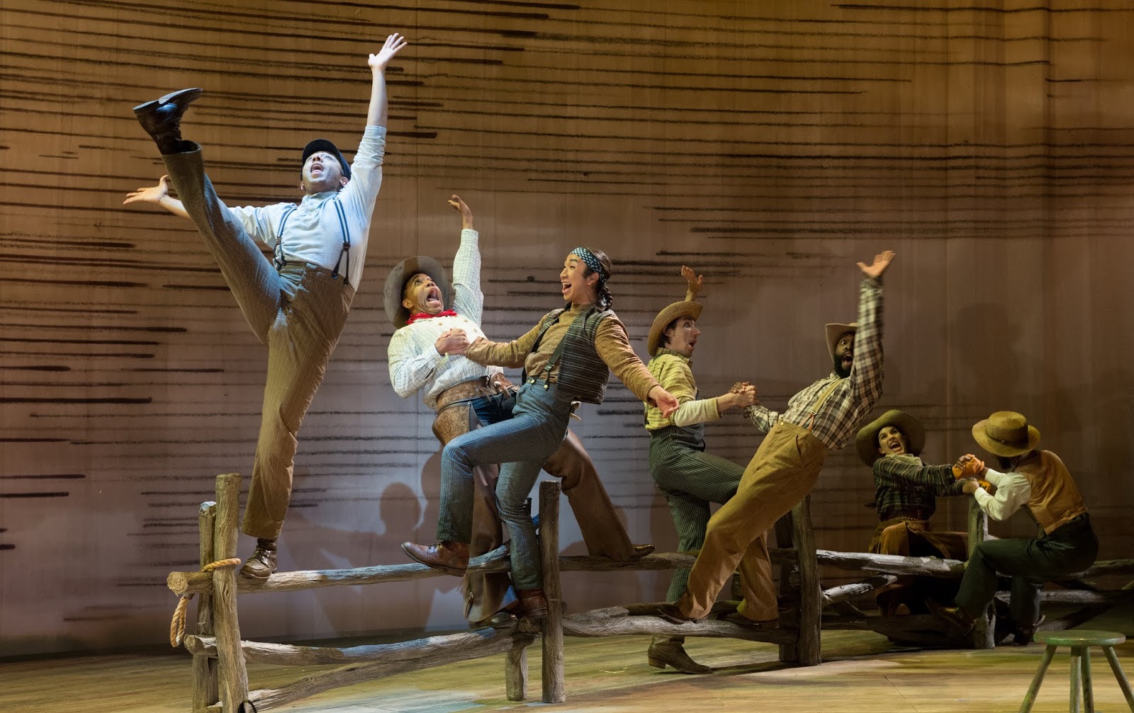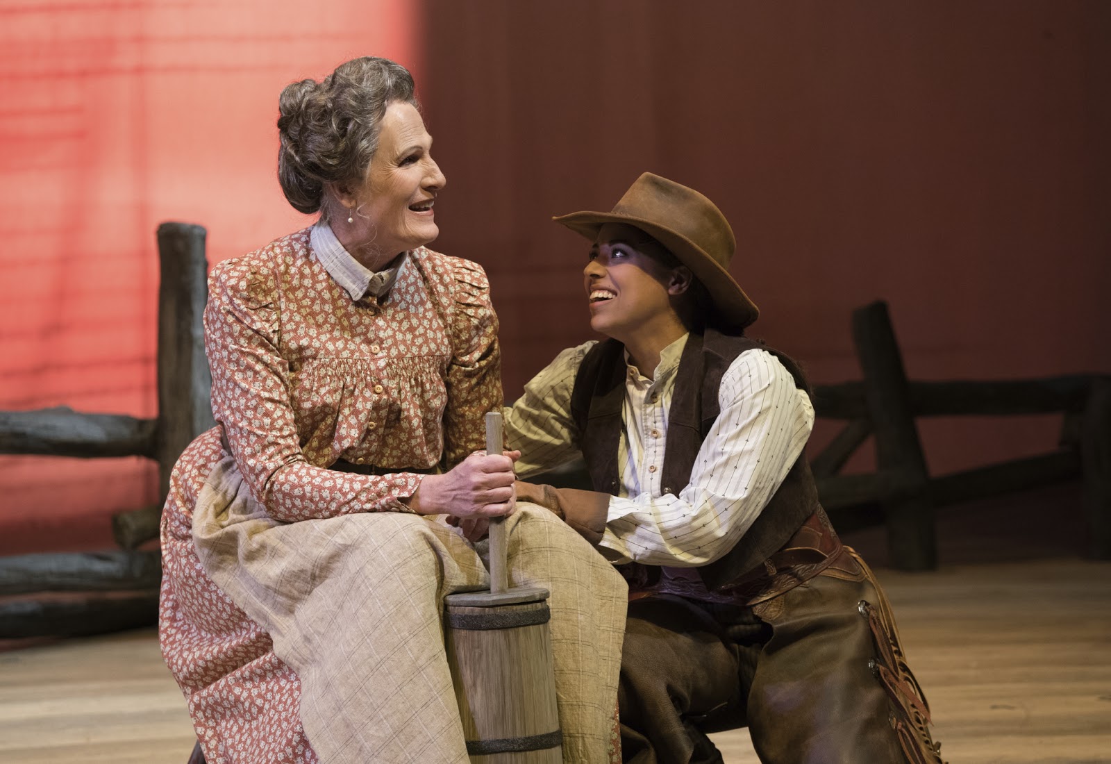 After relishing an overture that is packed with numbers now encased in the Great American Songbook (during which audience humming and outright singing of words can readily be heard), anticipation is high for those first few notes of “There’s a bright golden haze on the meadow.” But for the first time its seventy-five-year history of thousands of productions worldwide, the handsome, bow-legged cowhand who saunters in while singing those lines in chaps and boots is a cowgirl, not a cowboy.