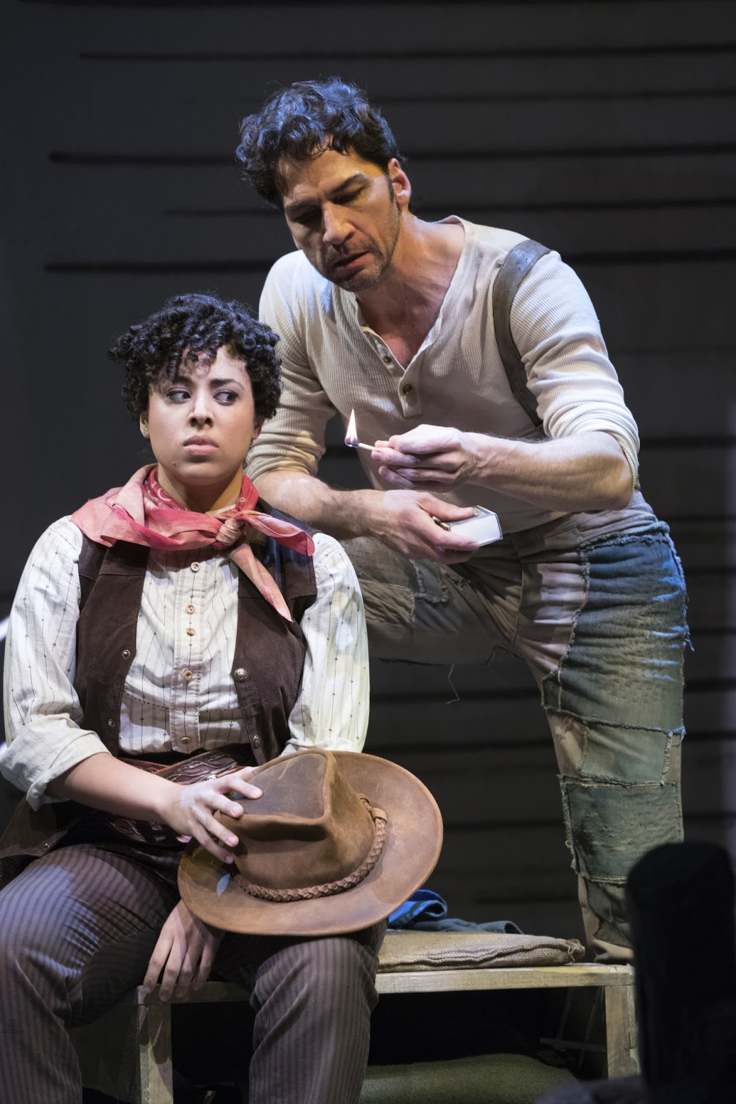 But the riches of this Oregon Shakespeare Festival cast spread way beyond the three, lead roles. The other potential, same-sex pairing between Will Parker and Ado Andy is a continual source of much laughter and fun as well as an inspiration to see how natural their on-again, off-again courting appears as two men who are clearly in love but still with tendencies to shop around other handsome, hunky possibilities.
