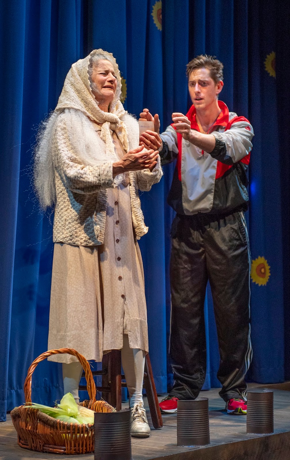 Marissa Keltie plays a variety of Ukrainian characters of the countryside, from a barmaid with no time for Alex’s flirting to a peasant in the field with threatening shovel, with no time for his inquisitions about a town called Trachimbrod. The latter’s reaction to that town’s name is a mirror of each person in the play who first hears the name: A moment’s stunned silence and look of dread, followed by a quick denial of ever hearing of the place.