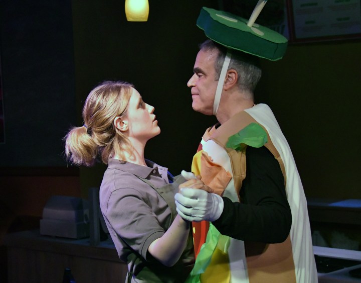 David Boyll is not only the elusive shop owner Bob, he plays other roles from a highly upset customer who only wants his bargain meal that is no longer available to a Sandwich Fairy that is a figment of a bone-tired Sheri’s dream world. He is also Gregory, a member of Tasty World’s corporate office in Denver who finally shows up at what he now calls “a franchise that has gone rogue.” For each of these, Mr. Boyll brings mixtures of funny fantasy and hard reality.