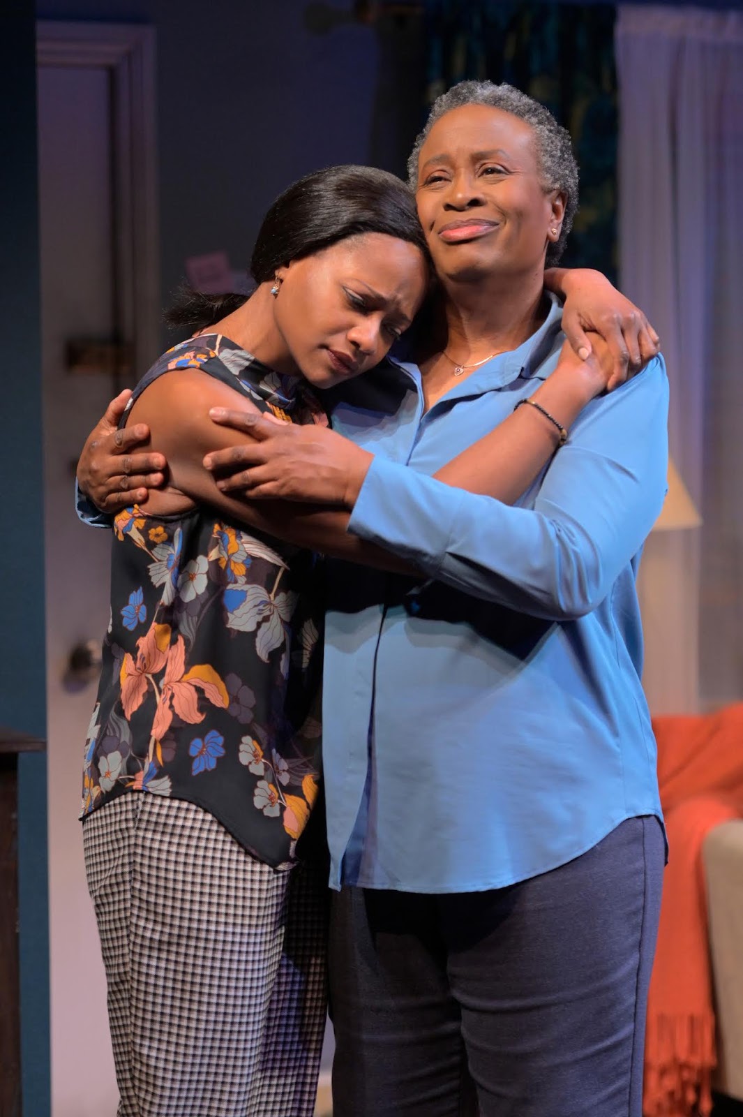 All occurs in an apartment that is so present, we feel we are sitting there with the family. Indeed, David Israel Reynoso’s designed apartment along with Jacquelyn Scott’s myriad of props gives us a home as real as any we can imagine, with the smells of scented candles and cooked soup wafting our way and everything from art pieces to a variety of colorful cushions to crockery on shelves that beg us to pause and notice. Yael Lubetzky’s lighting design illuminates and shadows the home in natural ways while the sound design of Jake Rodriguez blends the strong-beat drums and brass music of Nigeria with the daily sounds of a New York apartment to present his own “portmanteau” statement. Finally, Sarita Fellows choice of costumes also remind us of the stark differences in climate between these two countries, reflecting the pervading divides in climate within the family itself.