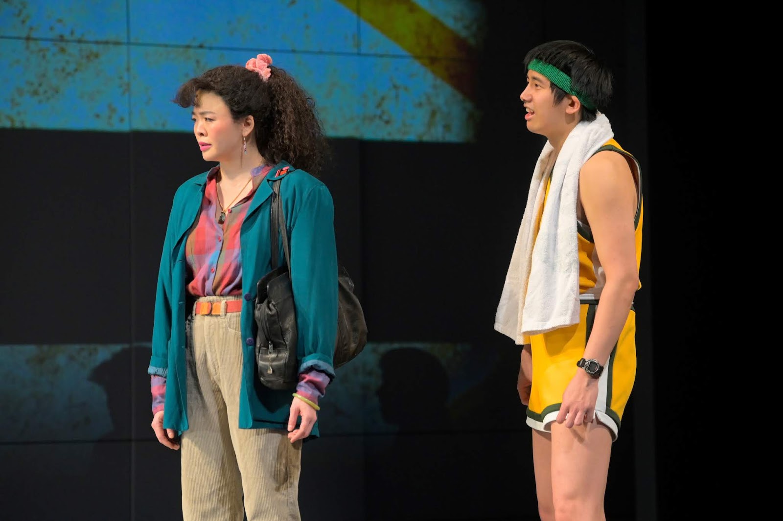 The build-up to both the showdown game and to the June 4 arrival of tanks is directed with incredible mastery of movement and sequence of time-skipping scenes by Lisa Peterson. The actual game is a sweat-producing, heart-pounding verbal yet entirely physical description the director orchestrates between opposing coaches Wen Chang and Saul. To accompany the dance of words and moves of the coaches, Movement Coach Danyon Davis choreographs lightning-fast twists, turns, and leaps of Tim Liu to produce a Manford show that is exhausting but exhilarating to watch. The drama is fantastically highlighted and pinpointed by the lighting design of Yi Zhao while the sounds of athletic shoes on wooden floor and dribbled balls are just one more part of the overall excellence of Jake Rodriguez’s sound design. With the Party-correct Wen Chang, the American typical Saul, and the Nike-covered Manford, Meg Neville capstones an entire evening of costumes that tell us much about the two time periods, the two cultures, and the four people that captivate our attention.