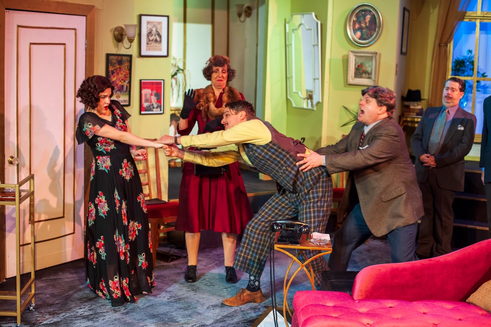 Pear Theatre presents in its intimate setting Noël Coward’s Present Laughter that bursts at the seams with riotous comedy propelled by a stage full of memorably quirky characters who get themselves and each other into a myriad of messes through adulteries, seductions, threats of blackmail, star-worshipping, and a star’s ego that knows no bounds. In doing so, the Pear proves once again that this is the small-sized theatre that can take on big-stage ventures with full aplomb and total success.