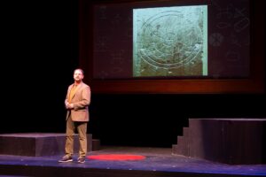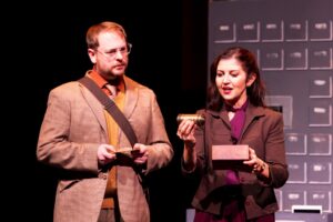 Rachel Wagstaff and Duncan Abel have sifted through all the myriad of twists and turns, dead-ends, and surprise revelations that pack the original novel and the resulting film to adapt this complicated, controversial story for the stage. Palo Alto Players takes the daring step to open the West Coast premiere of this 2022-London-premiering stage version, producing a lean-in compelling and quite comprehensible two hours, thirty minutes of a story whose many twists and turns could easily leave a live audience confused and lost. PAPlayers’ The Da Vinci Code should more than please any of the novel’s eighty million readers as well as introduce its thrills, suspense, and fantastical conclusions to novices like myself who arrive with little-to-no prior exposure to this deadly, international quest for the legendary Holy Grail.